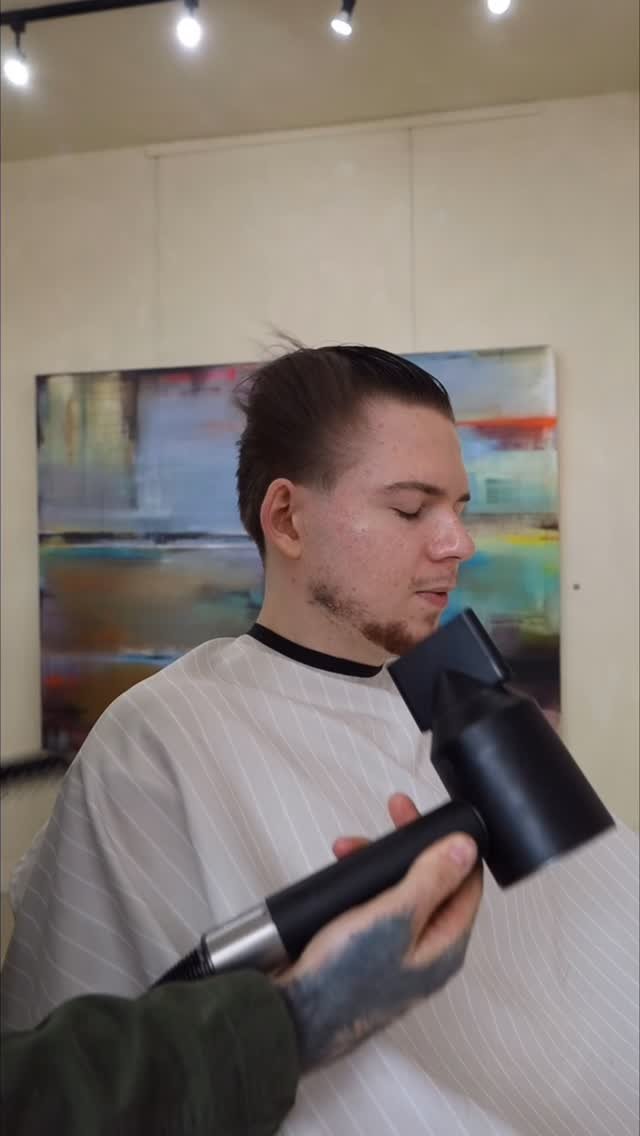 Tom sectioned everything like a pro, cleaned it up without losing too much the length, and gave me a slick back that actually works with my natural wave. Nailed the beard, Straight top line, shaped to my face, no dips, no fuss.